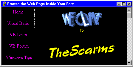 URL into the textbox such as "www.TheScarms.com" and click the Visit Web Site