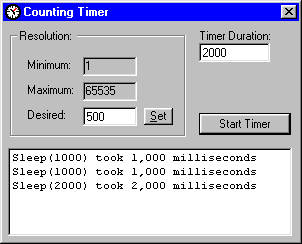 timer. As with the counting time, timeBeginPeriod and