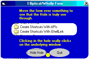 The above form was over an Explorer window. To create a hole begin on the